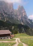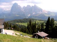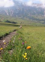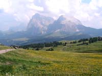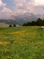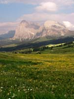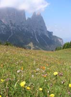 中心はコルチナダンペット(1956年 第7回冬季オリンピック開催地)であるが、今回は花畑を求めて西にあるシウジ高原(Alpe de Siusi)を訪れた。