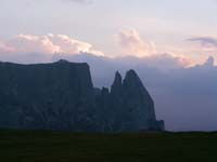 しかしながら、ガイスラー方面から絶えず雲が飛んできて、サッソルンゴには陽が当たらない状態で写真にはイマイチ。