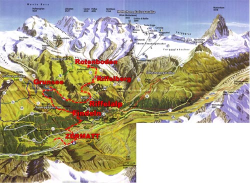 なお、現在(06年7月)、RiffelbergとRiffelalp間のハイキングルートは道が崩れて通行不能。