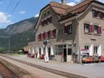AlvaneuDorf -バス10分 5.25chf-> Tiefencastel 13:15 -列車 50.8chf(アンデルマットまで)-> 14:57 Reichenau-Tamins 15:05 --> 15:11 Disentis/Muster15:22 --> 16:46 Andermatt
