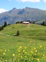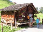 家は高々100軒ちょっとの小さな村で、小学校は木造、家の裏庭ではパイプを咥えたおじいちゃんが薪割りをしている。宿の裏手では中学生くらいの子供が牧草を刈っていると言った絵に描いたようなスイスの山村である。道端には可愛らしい農家の直売所(チーズ、ソーセージ、手編みの靴下など)があったりして、観光客が群がっている。