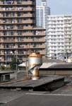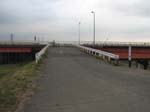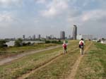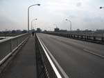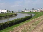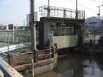 | レストランの西にある大きな水門を渡る | E荒川の土手を歩くがこの辺りには超高層ビルが林立。 | ビルの谷間に、今時めずらしいキューポラのある町工場があった。 | 新荒川大橋を渡る。全長1kmと歩いても歩いても行き着かない。 | 新河岸川には、今もだるま船が行き交う。 |