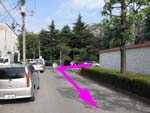 | ・・・300mほどで歩道は途切れるB。ここを南に曲がる(ラブホの角) | 200mほどで自動車道路に出る。ここから先は県境に道は無いので、適当に南西に足を進めるとやがて新芝川の土手にでるC。 対岸にはトッパンの大きな工場 |