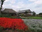 西濃運輸のデポの南に斜めに入る道があるので、ここで川と一旦お別れD。 高速に沿って南下。やがて荒川との合流点。ここには「都市農業公園」があり、古い農家も移築されている |