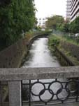 ここから先は複雑だが、人に聞きまくってでも、とにかく「ひばりが丘北口バス停」Kにたどり着こう。バス停から北に入る小さい道を行くと | やがて黒目川を渡る(神宝大橋L)。黒目川は小平霊園付近を水源とし、流域には今なお武蔵野の面影を残す。 |