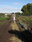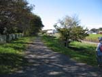 A 米軍の大和田通信所がいまでも広大な敷地を占める。この敷地内を県境が通る。手前の農道を北へ入る。 | 農道。道端の野菜に季節感を感じながら歩く | 農道は志木街道にぶつかる |