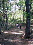やっとトトロの故郷「八国山緑地」の入口。14:00 | 八国山はは広葉樹の自然林が生い茂る。コナラが多く、どんぐりが無数に落ちている。中には芽を出したものもあり、盆栽用に拾ってきた。 | 緑地の尾根が県境で、約2.5kmある。西の出口の目の前に遊園地 |