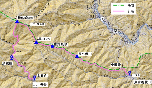 12:30 ゴンジリ峠 埼玉県側から関東ふれあいの道として上って来た峠 |