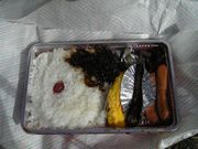 | 5時半:朝食。 6:00出発(+1℃)。 ↑小屋で作ってくれた弁当 昔は握り飯2個とタクアン3切れと決まっていたが、卵焼きにウィンナーまで入っていた |
