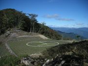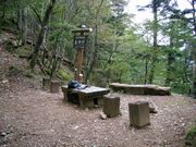 こちらは明治時代に立てられた原三角測点。 | 15:00 今夜の宿泊場所 雲取山荘。 宿泊客が少なかったので、1パーティーに1部屋が割り当てられた。シーツは無いながら、掛け布団は羽毛。夕食はレトルトながらハンバーグ。隔世の感がある。 トイレは別棟であるが水洗。 |