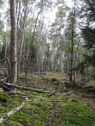 今まで、その名前から何か暗いイメージを持っていたが、殆どがカラマツと広葉樹林で明るく、北側斜面にまいた道にはスギゴケとビロードのような苔が一面に敷き詰められ、すばらしい。