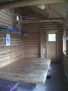 14:00 雲取山避難小屋(頂上の20m手前)。広く、綺麗 |