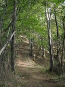 最初は尾根の東側の斜面を歩くが、植林の杉は少なく気持ちよい | 10:20 尾根の上に出る |