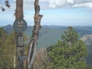 山頂から雲取山を振り返る。 下る道を間違えて一杯水避難小屋に着いたのが、13:45。バスは15:00と16:25. 飛ばせば15時のバスに間に合うかも・・と大股+休憩なしで歩いたらバスの出発時刻の5分前に滑り込みセーフ。 |