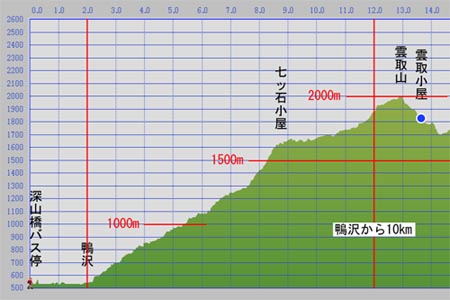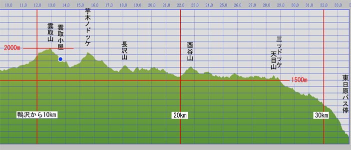 11.鴨沢 → 雲取山荘(泊) 13.7km(県境部も同じ)