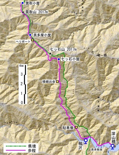 10.雲取山荘 − 長沢背稜 − 三ッドッケ 20km(県境部15.3km)