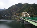 | 深山橋。バスは小菅行きなので、もっと先の「玉川キャンプ場」までバスで行けたが、それでは県境歩きにならないので、ここで下車し歩き始める。 | ここは小湊、ホテル三日月♪ 純金のお風呂でもあるのかな〜? |