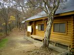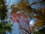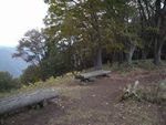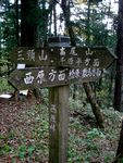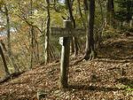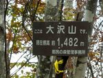 | 木の葉ごしに高い秋の空 | ヌカザス山からのメイン登山道に合流。ここで短い昼食タイムを取る。ヌカザス山方向から学生らしき二人組みが来て、あっという間に追い越された。若いって素晴らしい・・・ | 三頭山 西峰山頂。三角点は東の峰にあり、そちらの方が3m高い。ありがたいことに県境は西側の峰 | 非難小屋。大きくて綺麗。一組の中年カップルが板の間にテントを張っていた。これってマナー違反じゃ無いのかな? | 次の小さなピーク大沢山。ヘトヘトの身体にはこたえた。 |