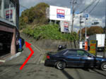 | 厚木街道沿いの道祖神 | A左斜めに入る道がある。50m先で厚木街道に戻るが、こっちが本当の県境。 | この道から西側の眺めが良い。 | B道の反対側にあるマクドナルドの北側あたりから、左に曲がる。 | 道路の右20m位のところが県境尾根。 |