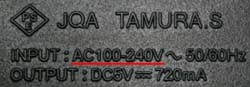 但し、電圧は220V。最近のデジカメや携帯電話の充電器は殆どが100〜240V仕様なので自分の充電器を調べて(下図)適合していれば、そのまま差し込める。念のためC型変換プラグ(¥400くらい)を用意して行けば完璧。