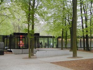 | オッテルロ Otterlo: 国立公園の入り口の町で、ここに至るまでの道も森の中を抜ける素晴らしい道。 しかしながら、森の中に第2次世界大戦の頃の戦車が置いてある。 日本では沖縄以外は地上戦は無かった。しかし、ヨーロッパはこんな風光明媚な場所まで戦場となった事実を実感させるものであった。 ドルプス通りにホテルが2〜3軒ある。その中の外見の可愛らしい 't Wett Hoesと言うホテルにする(75euro)。 ホテルのレストランは雰囲気が良く高そうだったが、たまにはリッチな食事をとホテルのレストランに行く。 定食は19.5euroと意外と安い。 内容はオードブル(七面鳥のスモーク)、メイン(鯛のグリル)、デザート(スフレっぽい)でソースを点線状にたらした飾りつけはフランス高級料理っぽく味も1級。フランスのオーベルジュでの料理より良く、いままでの中では一番おいしかった。