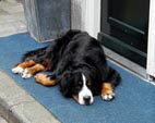| スヘルトゲンボシュ S'Hertogen Bosch: 上に同じく典型的な古い町だが、ブレダに比べると大きな町であった。 運河めぐりの客が橋の上の我々にしきりに手を振ってくれる(おれ達が珍しいのか、もの好きな外人だ)。 疲れて、この町ではあまり写真を撮っていない。しかたないので昼飯と犬の写真でごまかそう。 ![]() |