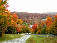 今日は一日中、小雨が降ったり止んだりの悪い天気だったが、帰路に着く頃から時々太陽が顔を出すようになった。左の写真は宿のあるコーワンスビル到着直前の道路で、何か心が洗われるような景色。