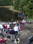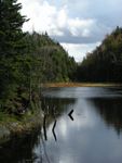 目標とした Lac Spruce湖までの標高差は230m。途中は紅葉しない木ばかりではあるが、それなりに気持ちが良い登山道。湖に着いたが先行した小学生がお弁当を広げて賑わしい。