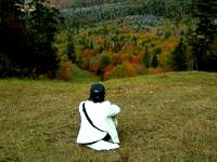 それなりに気持ち良いウォーキングであったとは言え、同じ道を下るのは面白くなく、紅葉も見たい。更に登って、スキー場の最上部に行った。ゲレンデは紅葉が綺麗。正式ルートでは無いがゲレンデを適当に下る。コースの両側は紅葉がいっぱいでモヤモヤが吹き飛んだ。