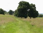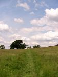 フットパスはスタンウェイに向けて緩い下りの放牧場を歩く道で、途中 その下で小休止をするのに適した大きな樫の木が何本か立っている。