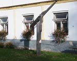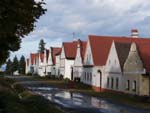 田舎道を走っていると畑のど真ん中に突然町が現れる。前面に装飾壁のあるチェコ特有の建物が、数十軒かたまっている(実際に人が住んでいるらしい)が、特に店などもなく町としての体をなしていない。マルアイも鍵が掛かっている。