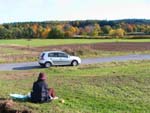 途中、道路わきの草原でスーパーで買ってきたパンの昼食。