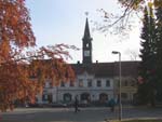 静かな田舎町、広場には歴史的な建物が幾つかある。