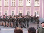 カレル橋を渡ってプラハ城へ。城内は異常な人ごみであったが、王宮前広場で大統領出席の閲兵式の最中。人ごみをかき分け30分ほど見物(今日はチェコの独立記念日で休日だそうだ)。終わると礼装の兵隊さん達があちこちに散らばって記念写真など観光客へサービスしてくれる。プラハ城の入場券は何種類かあるが、私はどうしても外せない聖ヴィート教会と王宮を含むBコース券(220Kc/人)を買った。聖ヴィート教会には、アールデコの先鋒としてパリで活躍していたミューシャのステンドグラスもある(ミューシャはチェコ人で晩年は祖国チェコに戻り尽くした)。