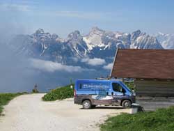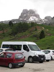チビアーナ峠から標高差約600mをシャトルバス(4WD:往復12euro)が一気に雲の上に運んでくれる。