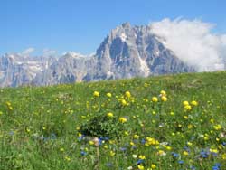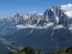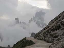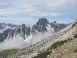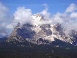 チベッタと共に、いつも頂上付近から雲が湧き上がりドロミテ滞在中を通して全貌を見ることは非常に稀 |