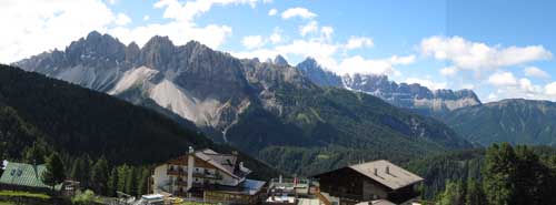谷の入口にあるセルヴァで、7年前にご厄介になった3姉妹のペンションに立ち寄る。 外出中の姉妹にも電話をかけ集合してくれた。 7年前のことなのに皆よく覚えていてくれた。 あの7人の子供たちを育てたグレートマザーは2年前に100歳で亡くなったとのこと。 言葉が不自由ながら思い出話に楽しい時間を過ごした。