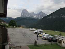 ![]() 曇りがちな天候だったが、ドロミテの天気は変わりやすく好転することを期待して、夢を実現しようとレスチエサ高原へ出発。 セチューダへのゴンドラ駅にある駐車場に車を停め、300m先のResciesaケーブル駅へ歩く 駐車場:8euro/day 雨こそ降らなかったが、残念ながら、天候は好転せず 期待していた周囲の山々の眺望は効かず。 本来、ガイスラーのギザギザ峰が真横から見え、シウジ高原も良く見えるはず。