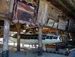 ■金毘羅さんあまりにも有名。785段の石段と聞いて家内は歩き出す前から泣きべそをかいていたが、おばあちゃん達がよぼよぼ上を目指す姿と見て「よーし!やるぞ!」と元気が出てきた。 途中、御書院(黒門あり)など色々な建物があって、着く度に「もう終わった」と勘違いしては、また登るの繰返しで本宮へ着いた頃はへとへと。 本宮にはテラスがあって、瀬戸内海が一望できる。 こんぴらさんは海運関係者の信仰厚く、絵馬堂には新船建造時の奉納額が沢山。 堀江謙一さんの「モルツマーメイド」号も奉納され置いてあった。 それから、TBSの秋山さんの奉納額・・・確かに宇宙船も船だな〜。