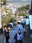 ■脇町 「うだつ」のある古い町並みが残る。積極的に保存活動をしており、電線は無く、側溝も埋めてあるので雰囲気のある町並となっているが、その分、工芸品などおみやげを売る店なども多く、少し出来過ぎ。 「うだつ」とは火災の時、軒沿いに広がる炎を止める為の隣家との間にある壁で、うだつのあるような立派な家に住むようになりたい・・・ことから「うだつが上がる」の言葉が出来た。 その一角、大谷川のほとりに、西田敏行主演の「虹をつかむ男」のロケに使われた「オデオン座」がいまでも残っている(映画館ではなく、町の施設となっているが)。また、旧織物工場の跡地に大きなショッピングモール「パルシー」が建っている。