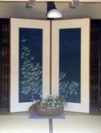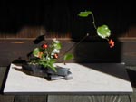 通りの中ほどには旧家の「永井家」があって内部を公開している(NHKドラマ「天涯の花」のロケ地でもある)。 折りから今日は、「藍染め」「いけばな-」「癒し音楽」のジョイント・イベントがあり、準備中。 各部屋には「雑草生花」のセンスの良いディスプレーがあり感動。 家内がこれに触発され、旅行から帰って来た後のぶらぶら歩きでもやたらと雑草をむしってはバッグに詰め込むようになった。 文化の香り高い町であった。