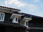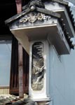 ■貞光町 脇町の隣りの貞光町にも「うだつ」が上がる。 こちらはうだつに「鏝絵」と呼ばれる手法の彫刻(レリーフ)があり、また2段重ねの重層で立派なもの。 大掛かりな保存活動はしていないが、住む人は誇りを持っているのかうだつの修理工事の最中の家もあった。 でも何気に生活臭がして私はこちらの方が好き。