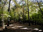 | ここも都立公園で、武蔵野の雑木林を都が保存林とした丘陵地で、トトロの故郷のひとつ (狭山丘陵のどこか・・と言うことになっているが不明)。 西武線・武蔵大和駅で下車(西武遊園地行きに乗るが、直通は殆ど無い。新宿線で小平乗り換えもしくは国分寺からなら萩山乗り換え)。 旧青梅街道沿いは、一応商店街らしいが、日曜のこの時刻は殆ど閉まっていて寂しい。 100mくらい先にスーパー、コンビニ、ほか弁などがあるので、ここで兵糧を調達。さらに300m程行くと「→ 円乗院」の道標。 |