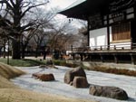 立派な山門をくぐると、本堂。イチョウ(東京都100銘木に指定)と乾山水が見事。