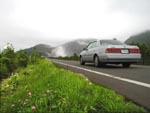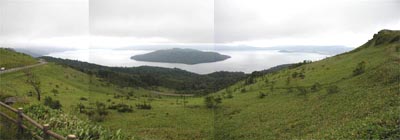 硫黄山: 今でも猛烈に水蒸気を上げていて、温泉卵を売るおじさんがいっぱい。 蒸気の出る穴の周りは砂が黄色い。硫黄の臭いで失神しそう。 摩周湖:朝から天気が良く、下から見上げると摩周湖方面には青空も見える。但し、頂上付近に雲が飛んでいるのが多少気がかり。 陽のあたる中、快適にヒルクライム。しかし上がって行くにしたがって所々で日が陰る。展望台に着くと嫌な予感が的中し、1面の霧。 最初は「霧の摩周湖もいいね〜」なんて冗談をいっていたが、10m先さえ見えない。まったくシャレにもならない「霧の摩周湖」であった。 弟子屈(てしかが): JRの駅名は今は摩周に変わった。最近トレンディーな「900草原」がある。 900草原は公営の牧草地で、夏場は各酪農家は牧草刈りの最盛期で子牛や子馬の世話をするヒマが無い。そこでこの期間のみ各酪農家がここに預けるとのこと。 720度?の展望がウリ。曇っていたので遠望はきかなかったが本当に720度見えそう。 阿寒湖: 阿寒湖への道は以外に遠い。飽きた頃 双岳台。ここは雄阿寒岳と雌阿寒岳の両方が見えるスポット。 もうすこし先には双湖台。ここはペンケトー、パンケトーの2つの湖が同時に見えるスポット。 さらに行くと阿寒湖畔。さすがに有名な観光地で伊豆の温泉街のよう。湖畔の地獄「ボッケ」付近に桟橋がある。先端からは湖ごしに雄阿寒岳と雌阿寒岳が見える景勝地。 但し、芦ノ湖のように遊覧船が行き交うのでタイミングを見図ってシャッターを押さないと駄作となる。