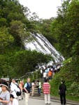 オシンコシンの滝: ウトロを過ぎると道路際にオシンコシンの滝がある。山際の崖から水量の多い滝が3条も落ちる。 なかなかの迫力。 |