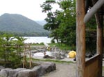 美幌峠: 峠には公営のレストハウスがあり、2階はテーブルもある展望台。 ここで先ほどの弁当を食う。できれば草原に座って弁当を広げたいところだが、何しろ寒い(11℃)。 美幌峠は何でも映画「君の名は」のロケ地だそうで、佐田啓二、岸恵子、北原ミエなどが写っているロケ風景の写真がやたらと貼ってあった。 ![]() 峠からくねくね道を下りると屈斜路湖。ひまわり畑が多い。 露天風呂群(全て無料): 屈斜路湖畔には公共の露天風呂が沢山ある。 和琴温泉:和琴半島の付根にあり、多少藻が浮いている。男のくせに海パンをはいて湯に入っているヤツがいる。こちとらは江戸っ子でい・・とばかり真っ裸で入る。 コタン温泉: こちらも湖に面した露天風呂で、藻などは無くきれい。ライダー達が「あそこの宿は安かった」などと情報交換をしている。途中の道に多くのライダー宿を見たが、1泊500円〜800円程度らしい。 池の湯、赤湯、砂湯: こちらも露天風呂として有名だが、さすがに身体も火照って3軒はしごはつらいのでパス。