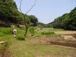 | この谷戸から恵泉女学園に至る尾根道へ入る。見晴らしが悪いので写真を撮らなかったが、広葉樹の雑木林で良い雰囲気。恵泉から東側の道沿いにまたこの谷戸に戻ってきた。この谷戸があまりに良い雰囲気なので、畑のあぜ道に腰を下ろして昼食。 | ||||