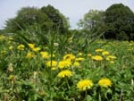 Fから北へ谷戸を下り、乗馬クラブあたりから左側の森を登ると高原状の草っ原。大きな木があり、たんぽぽも満開。狭山湖の堰堤や奥武蔵の山々が眺望できる。