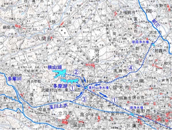これらの原水は、東村山浄水場から狭山・境緑道の下を通って 境浄水場に導かれる(緑道を流れる水が浄水か原水かは定かではない)。